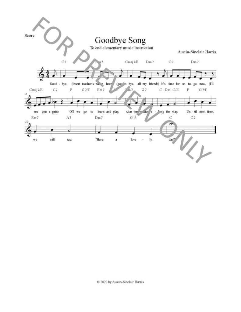 Just as elementary music teachers often greet their classes with music/a song, this song is designed for teachers to sing with their students as class ends. The song begins with call-and-response and then the teacher sings together with the students.