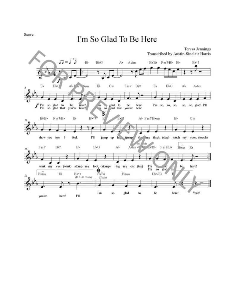 I’m So Glad To Be Here Lead Sheet- $15.00