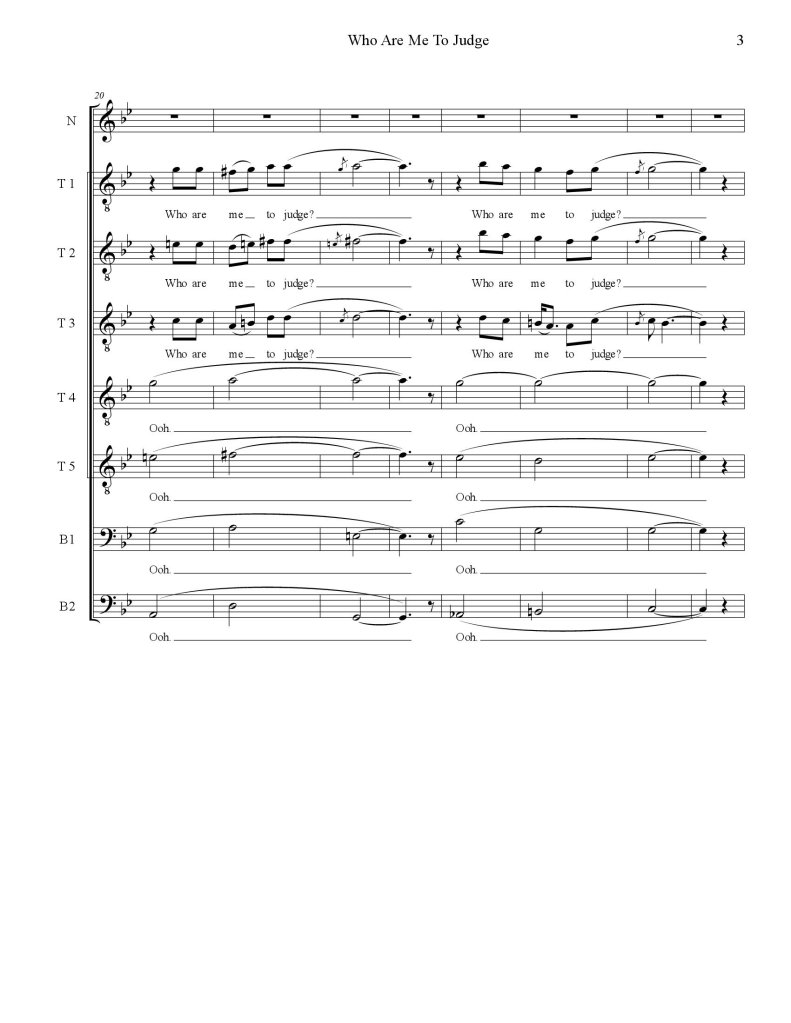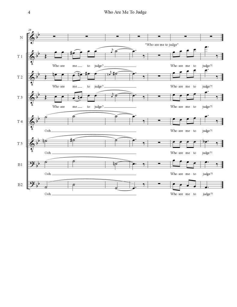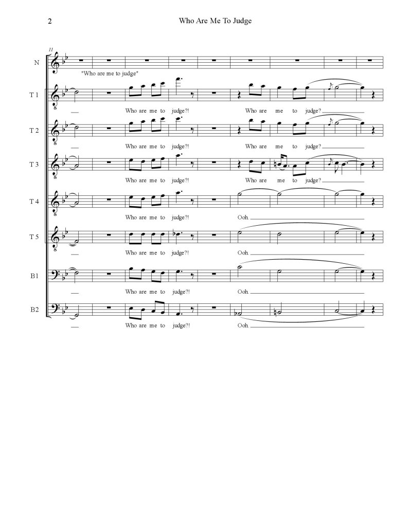 Andrew Caldwell, most notably known for the phrase “I am delivert!”, was parodied in a video by Andre Forbes (known on YouTube as MusicManDre). The video features Andrew saying the phrase “Who are me to judge” backed up by a vocal jazz ensemble putting the same phrase to music. This transcription and any other humorous transcriptions are free of charge.